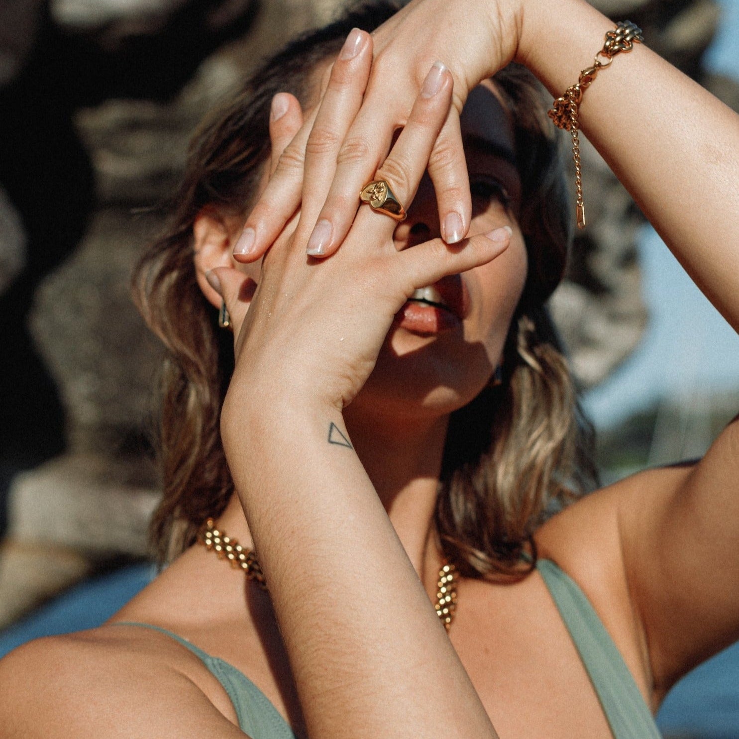 We choose to make all our jewellery with you in mind. So our care advice is, to look after yourself. You go for a swim, you go to the gym, you get sweaty, you go to sleep, you apply cosmetics and creams. You wear any of our pieces whenever you like, for as long as you like to whatever you like.