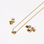 3mm diameter ball stud with post and push fastener. Easy to put on. Easy to wear. No need to ever take off. The go with everyone classic and ideal for 'stacking'