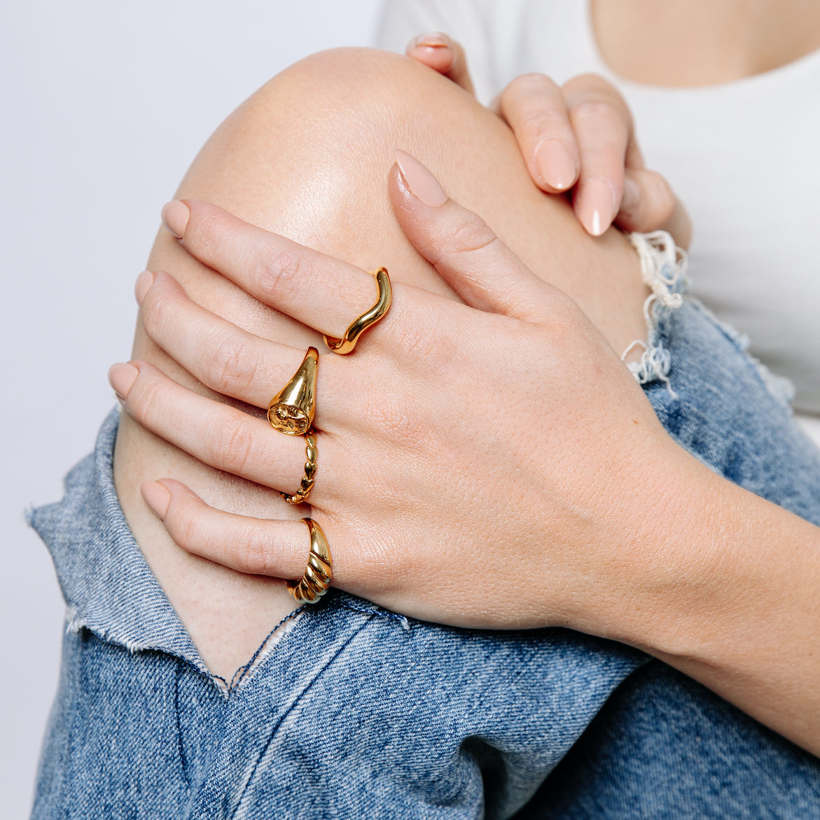 We choose to make all our jewellery with you in mind. So our care advice is, to look after yourself. You go for a swim, you go to the gym, you get sweaty, you go to sleep, you apply cosmetics and creams. You wear any of our pieces whenever you like, for as long as you like to whatever you like.