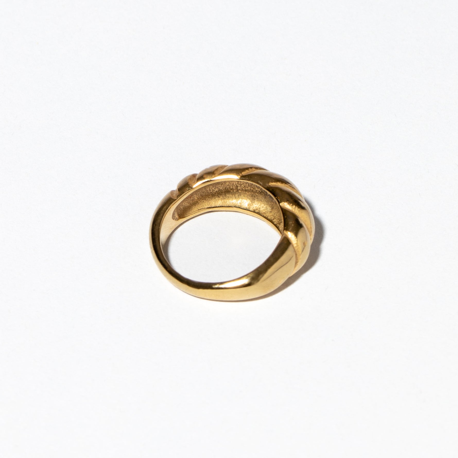 A ring made of layers of whipped gold referred to as a Croissant style, sell for over $1500 in this size as solid gold.