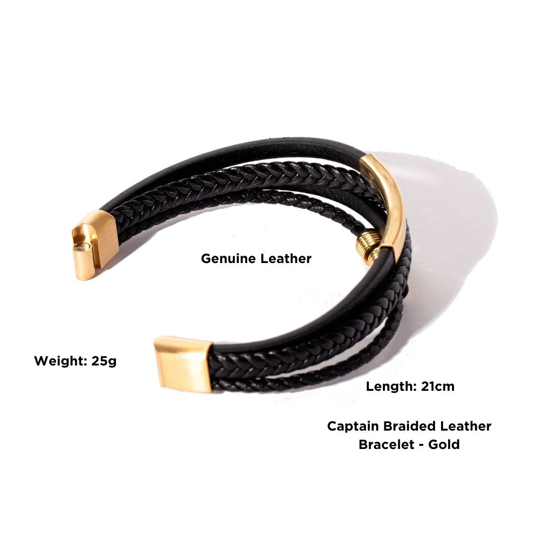 Captain Braided Leather Bracelet - Gold