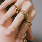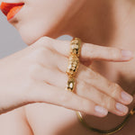 8mm wide at its largest width and a luxurious 4mm thick. 18K Waterproof, Tarnish Proof, Permanently coated.