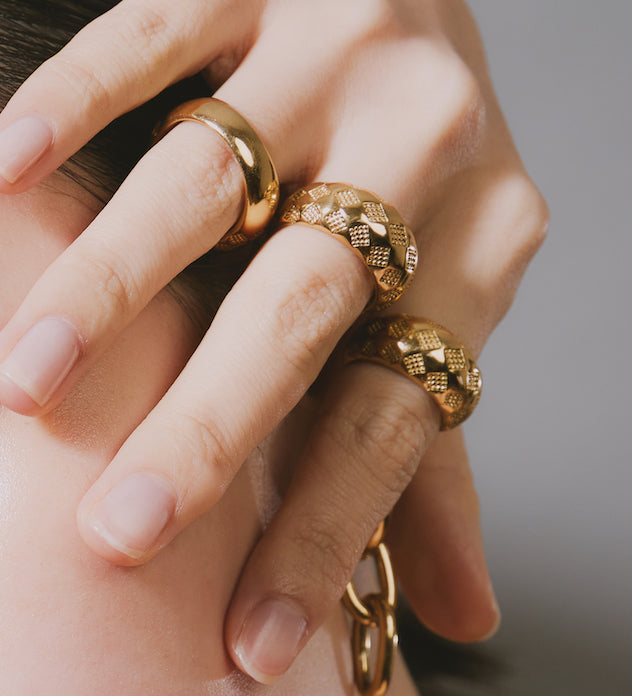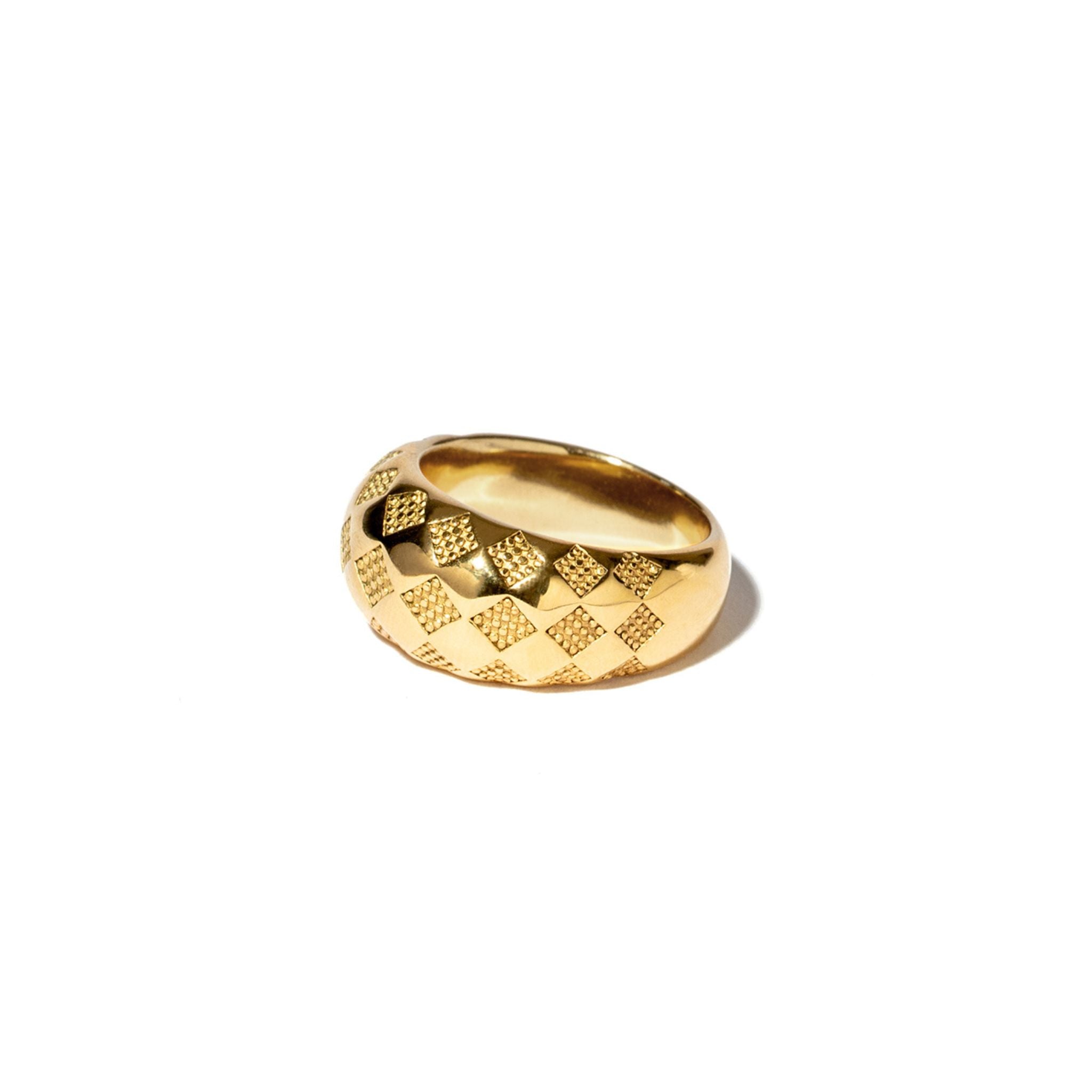 Inspired by the classic charm of a chessboard. A glamorous ring with  intricate etchings.
