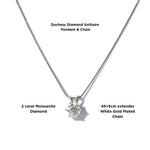 2 carat man made diamond gem (8mm in diameter) set in pure silver setting and chain.