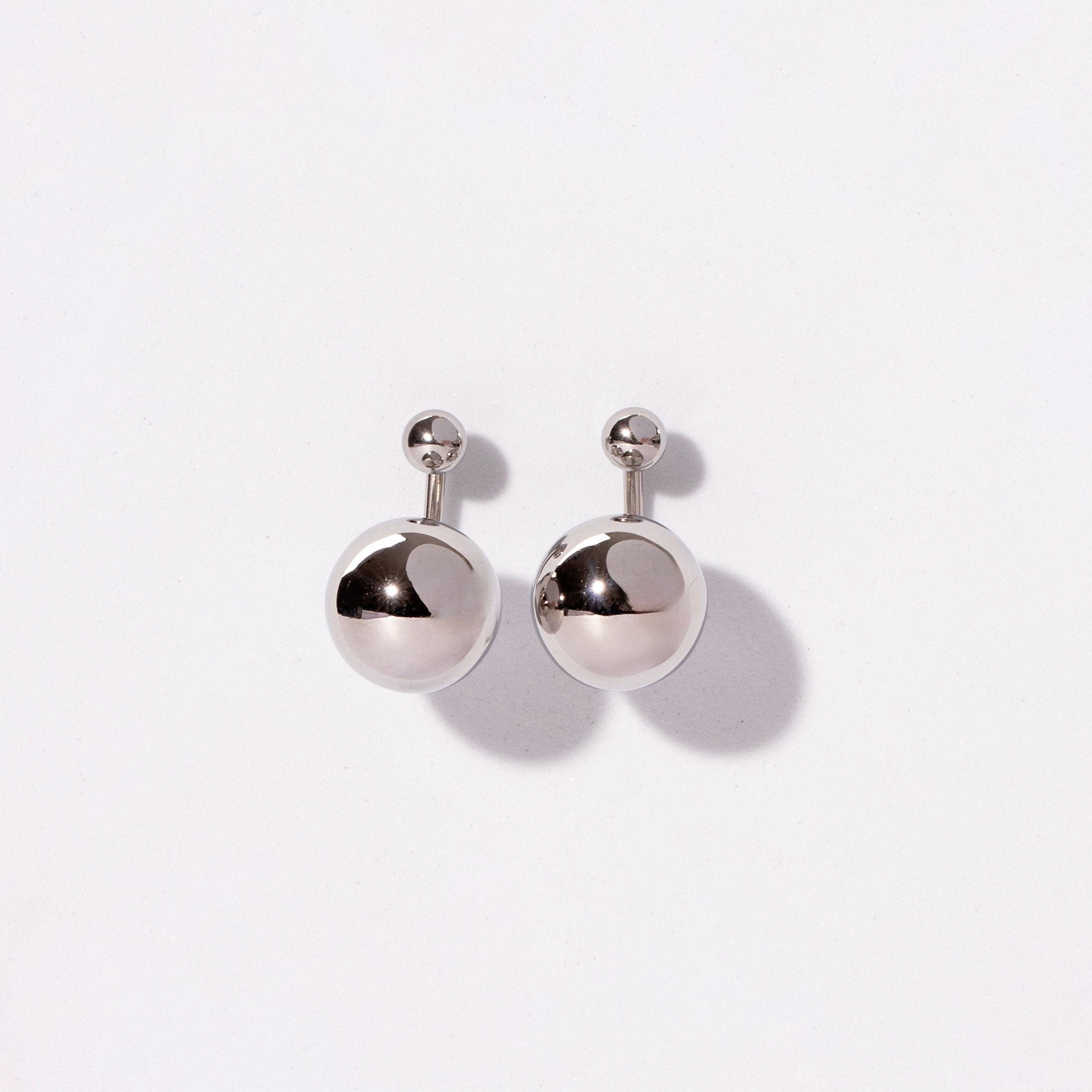 Small ball studs with large ball feature under the earlobe!