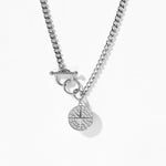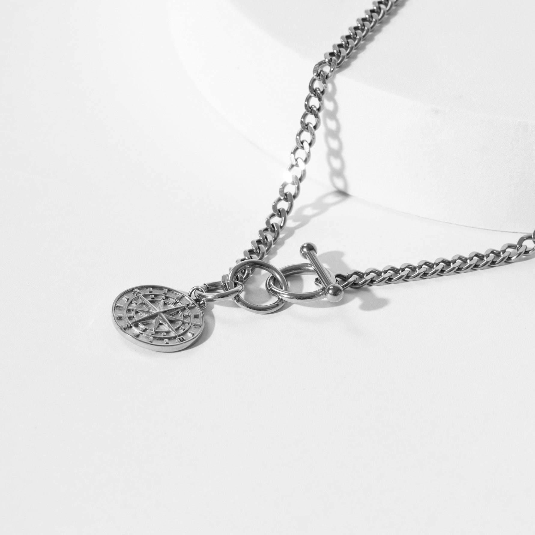 A gorgeous silver compass adorns a generous link chain with Fob Closure. A stunning and unique piece!