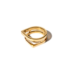 Two childhood shapes hang together in happy unison to create this artful gold style.
