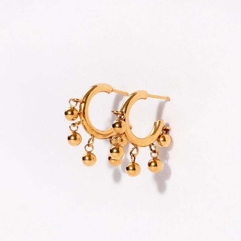 An every day pair of earrings with the cheeky addition of gold balls make these a delight to wear. Totally unique. Waterproof, Tarnish proof and fashion forward. Pair with our Love Bead Bracelet for an amazing set!