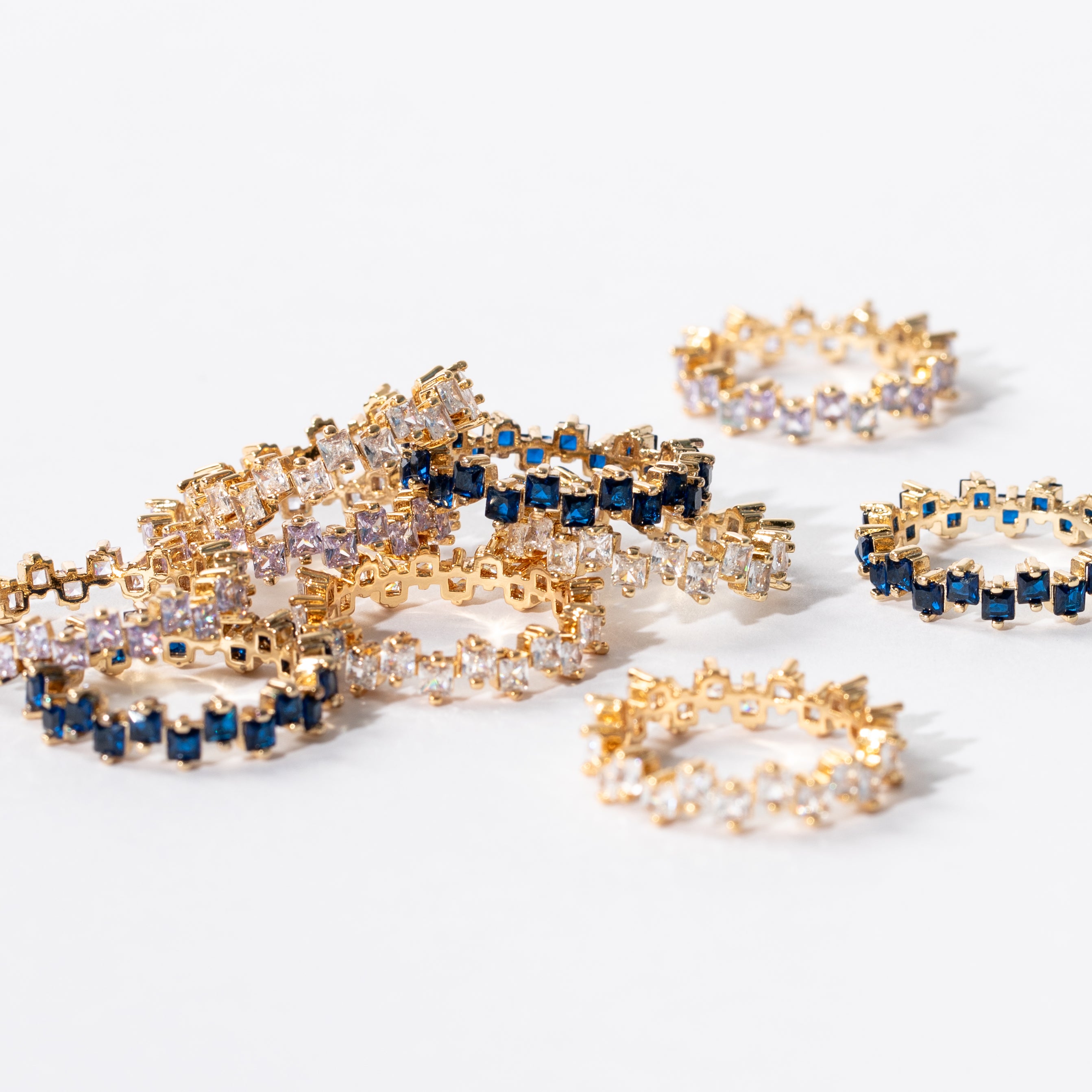 Diamonds in solid 18K gold ring styles like this sell for $4,000 upwards. Ours offers the same gorgeous sparkle and durability for a lot less. Waterproof, Tarnish Proof and Allergy free. Stack with our other man made styles. Ocean Sapphire, Lavender Lights and Topaz