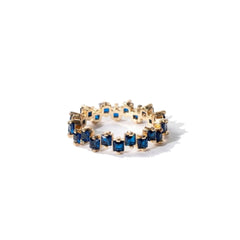 Moissanites are lab grown gems that replicate the exact sparkle and durability of diamonds and coloured gems found in nature. This extremely pretty ring offers over 20 gems set in waterproof permanent 18K gold.
