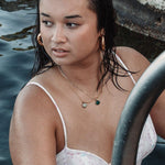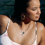 Get the look of expensive solid gold designer pieces with this beautifully crafted necklace and pendant. You need never take it off as it is waterproof, tarnish proof and allergy safe. A classy forever piece. We offer similar styles in light green with our Tranquility Pendant and pale blue stone with our Aqua Pendant.
