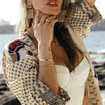 Marine grade stainless steel contains molybdenum to resist the corrosive effects of NaCl or salt in seawater. That means you can be glam at the beach and it won't affect the several layers of 18K genuine gold coating that we apply.