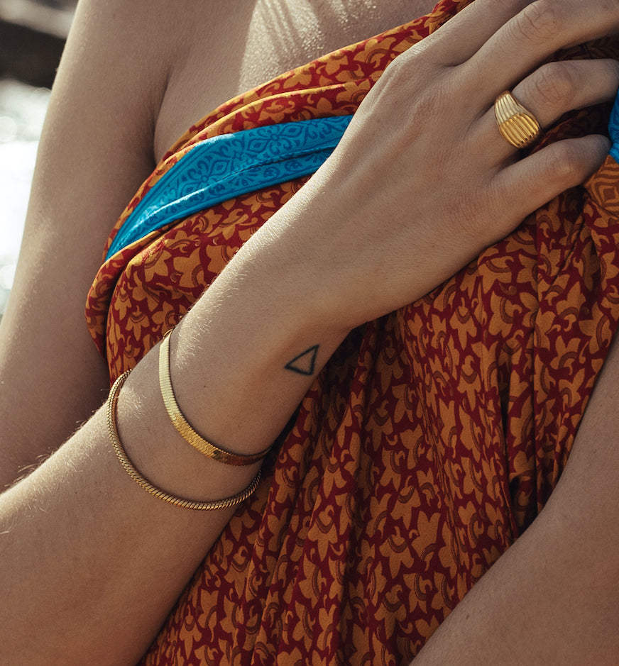 We choose to make all our jewellery with you in mind. So our care advice is, to look after yourself. You go for a swim, you go to the gym, you get sweaty, you go to sleep, you apply cosmetics and creams. You wear any of our pieces whenever you like, for as long as you like to whatever you like.