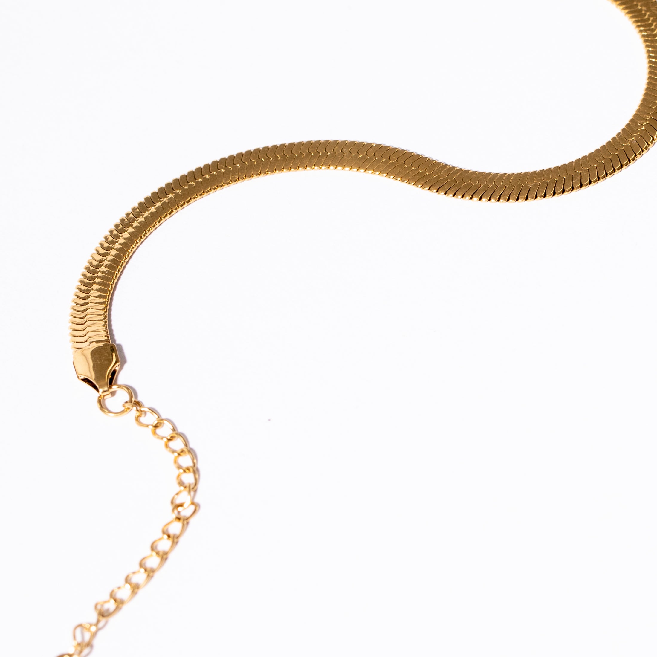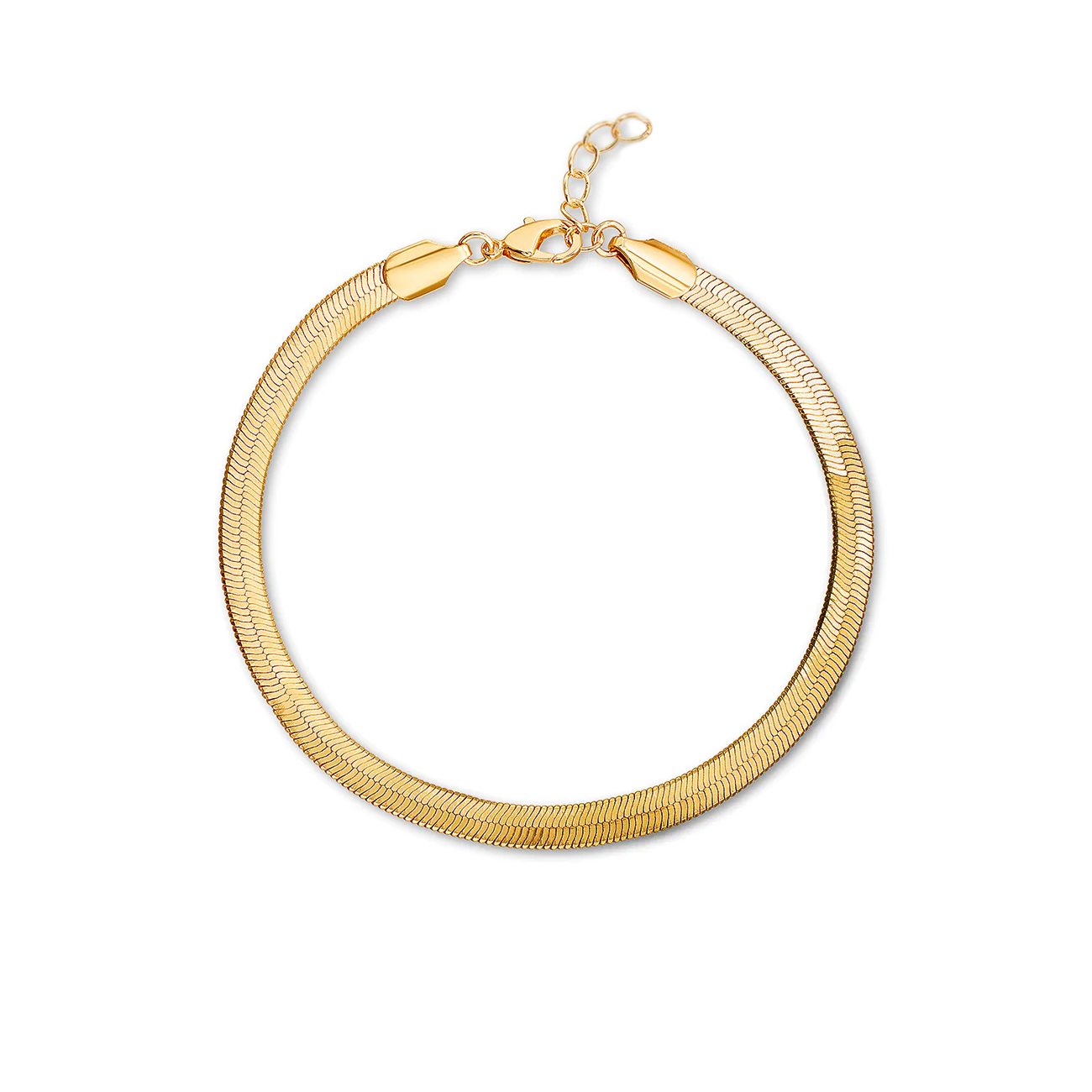 This 5mm wide herringbone chain sits flat against the skin and wears like it's been poured on.