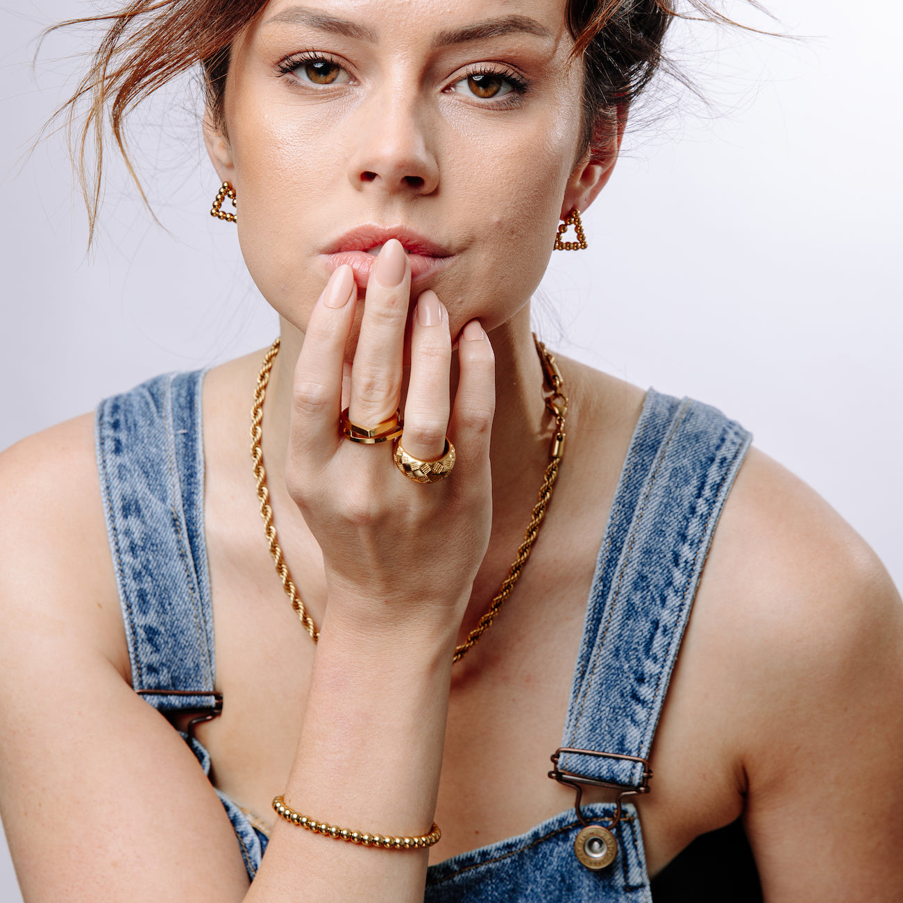 We choose to make all our jewellery with you in mind. So our care advice is, to look after yourself. You go for a swim, you go to the gym, you get sweaty, you go to sleep, you apply cosmetics and creams. You wear any of our pieces whenever you like, for as long as you like to whatever you like.
