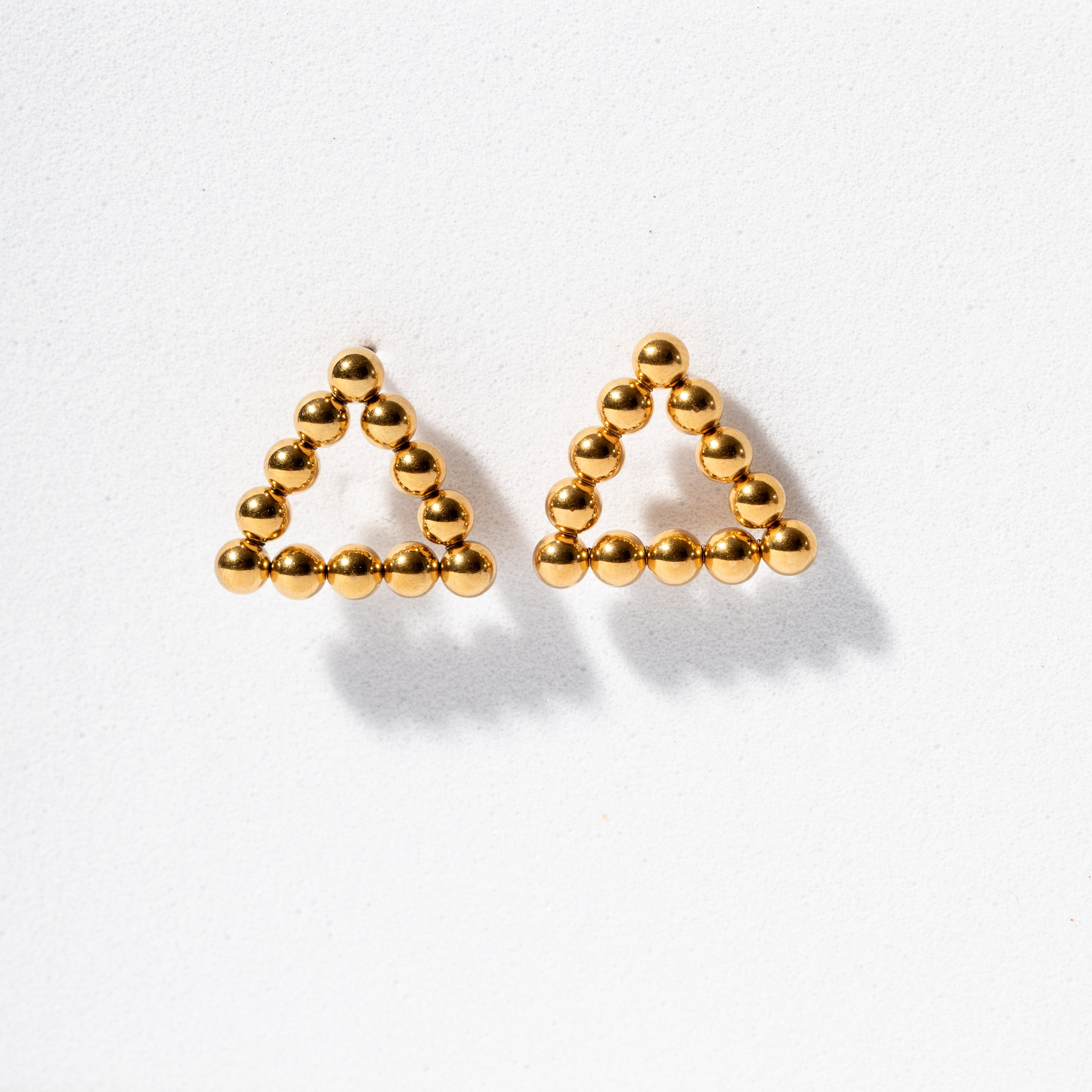 Marine Grade Stainless steel coated in genuine 18K gold for a permanent no tarnish waterproof finish. 12 perfectly smooth little gold balls all fused together in an easy to wear post and stud clasp.