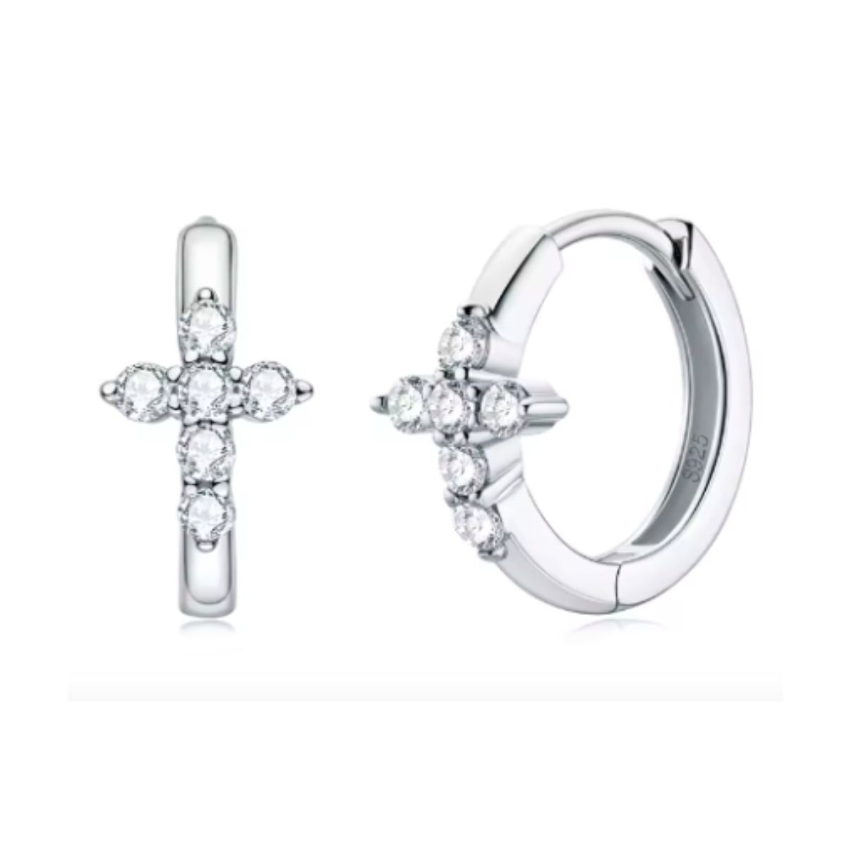 12 man made certified top quality and clarity diamonds set in crucifix style and embedded in pure silver. Every day glamour that won't ever tarnish. Stunning on their own as they catch the light as you move, just like diamonds found in nature but for a fraction of the cost. See our matching necklaces for a divine set for life!