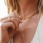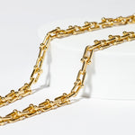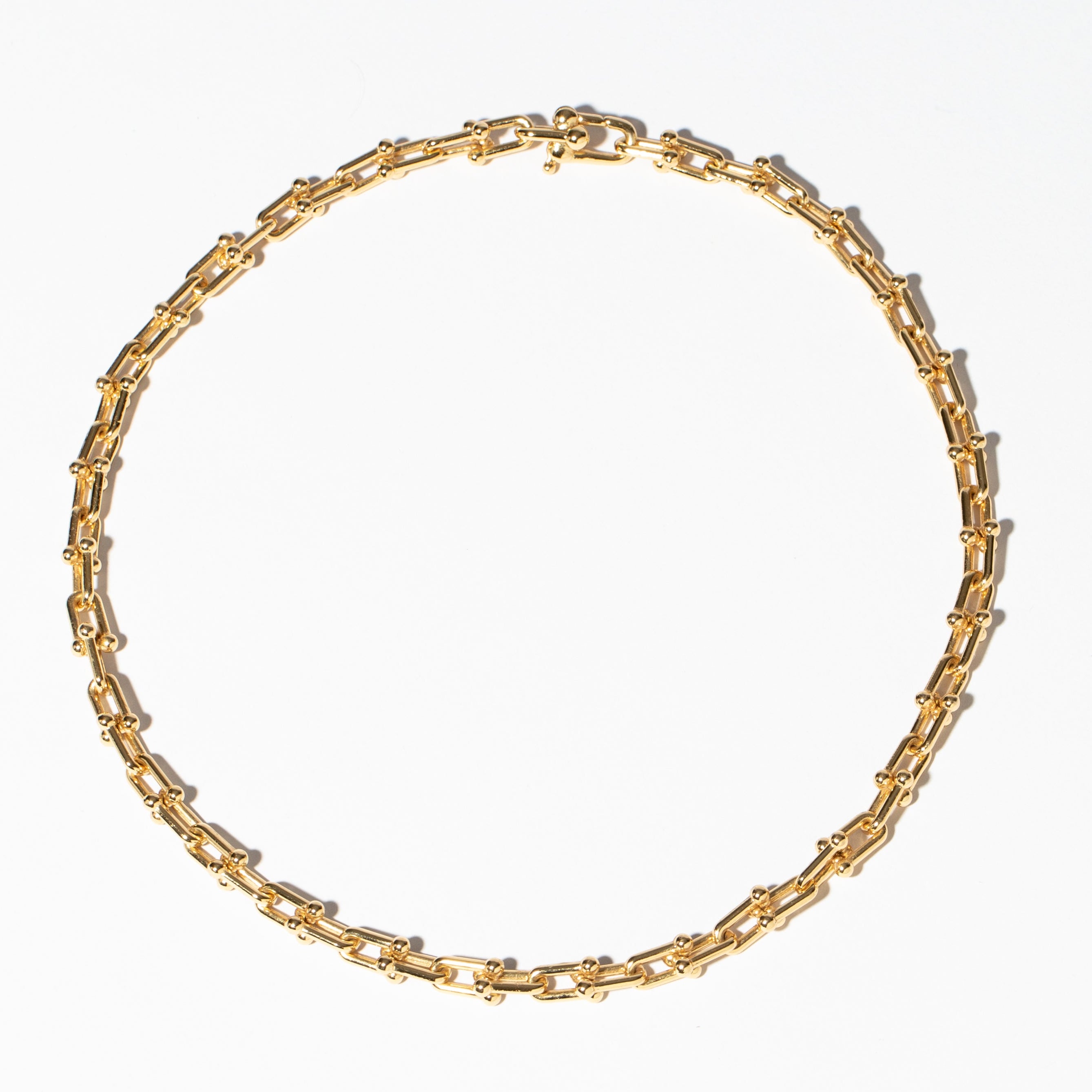 This style necklace is made up of skinny horseshoe shaped 1cm links with small gold balls as clasps.