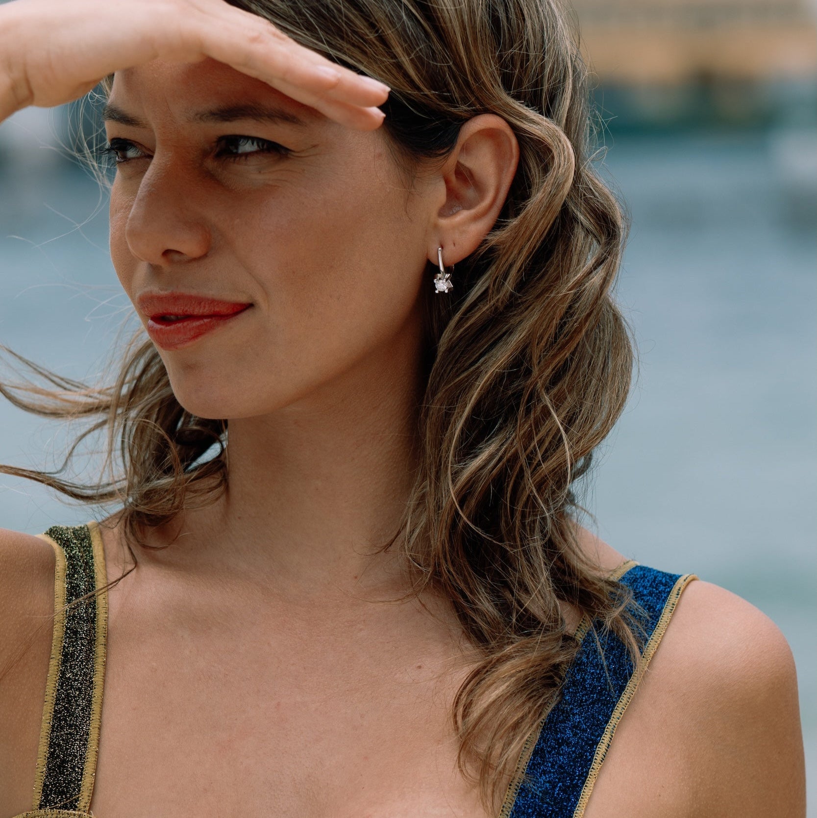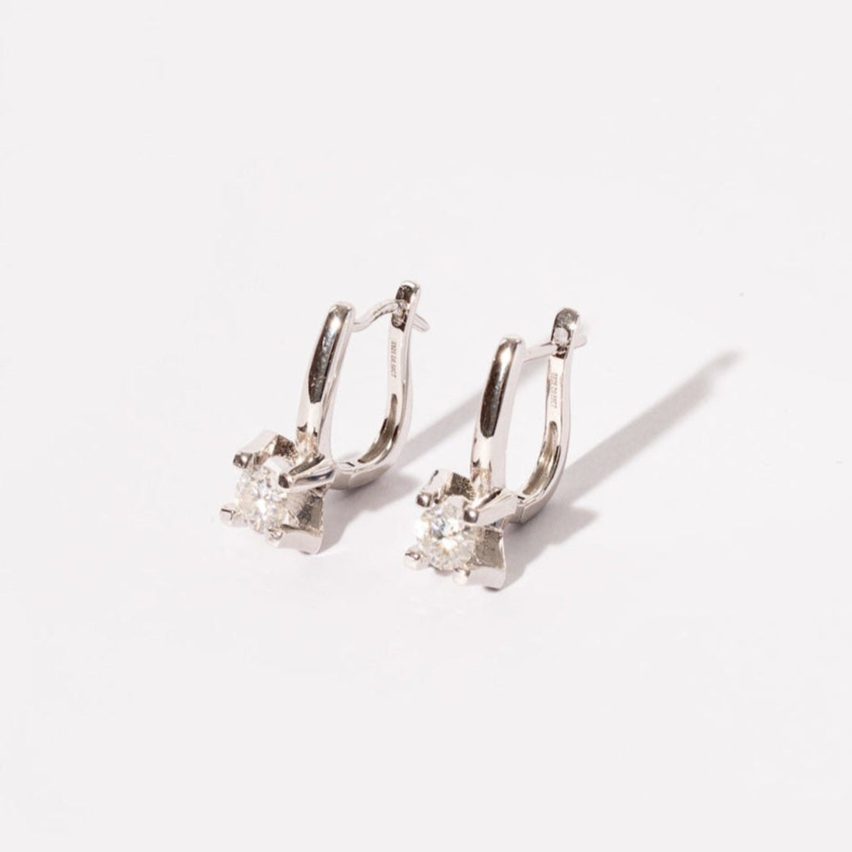 Solid Sterling Silver, The highest quality DEF man made round cut brilliant 0.5 carat diamonds in each earring, set securely in a deep four prong setting with fail safe leverback closures for comfortable easy wear. Stunning alone as the gems sparkle in the light, yet also gorgeous with additional earrings for a layered look. Earrings like this in white gold with nature found diamonds sell for $3,000 and above. Ours offer the same look, feel, wear and durability for a fraction of the cost. Waterproof, tarnish proof, forever piece that you will love. Match with our range of silver and diamond rings, bracelets and necklaces for dazzling durable jewellery you'll never take off.
