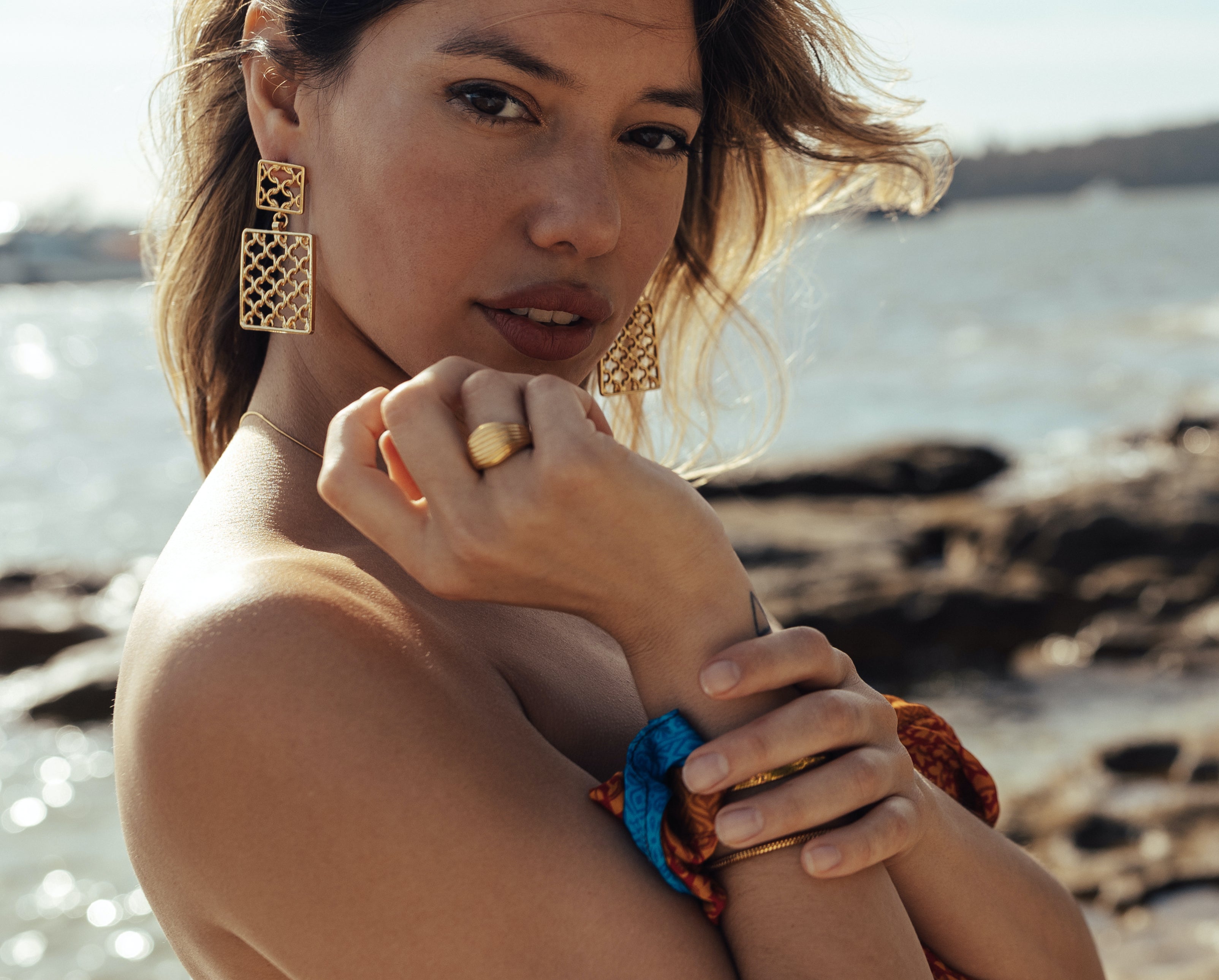 We choose to make all our jewellery with you in mind. So our care advice is, to look after yourself. You go for a swim, you go to the gym, you get sweaty, you go to sleep, you apply cosmetics and creams. You wear any of our pieces whenever you like, for as long as you like to whatever you like.