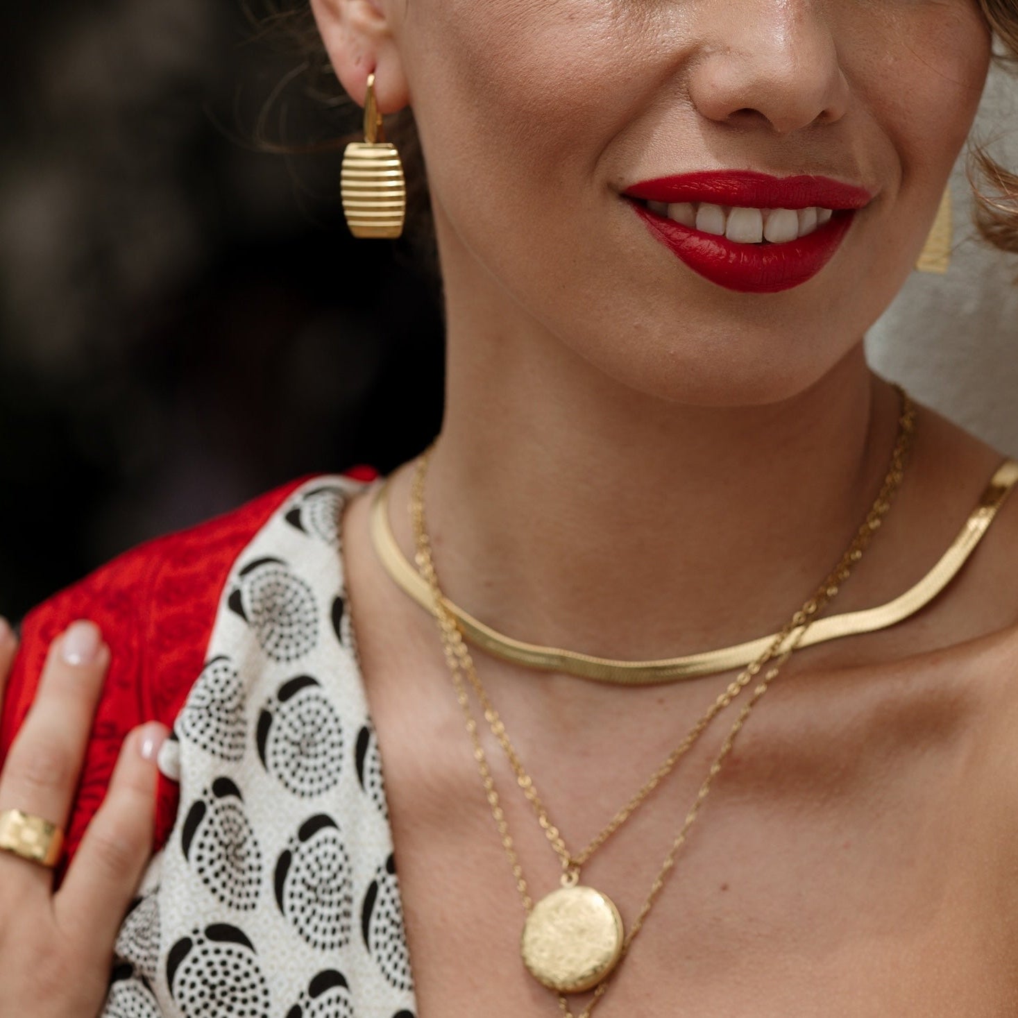 Petra is a feminine name whose bearer may be praised for their empowering strength. Unshakeable and resilient. Bold yet feminine. Solid gold versions of this style sell for upwards of $3,500. Ours give you the same look, feel and wear for a fraction of the cost. Luxury for less with our quality 18K gold permanently coated tarnish proof, waterproof and allergy safe jewellery.