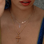 You can wear this non-stop. It won't tarnish or fade or lose its lustre. Designed to light up any hairdo or make up and add a sparkle of glamorous intrigue to your neckline. An absolute wardrobe staple. Solid 18K gold cross pendants like these, sell for upwards of $1,000