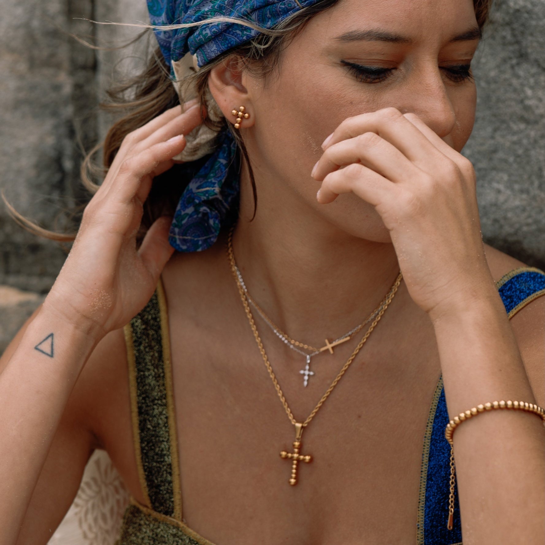 We choose to make all our jewellery with you in mind. So our care advice is, to look after yourself. You go for a swim, you go to the gym, you get sweaty, you go to sleep, you apply cosmetics and creams. You wear any of our pieces whenever you like, for as long as you like to whatever you like.