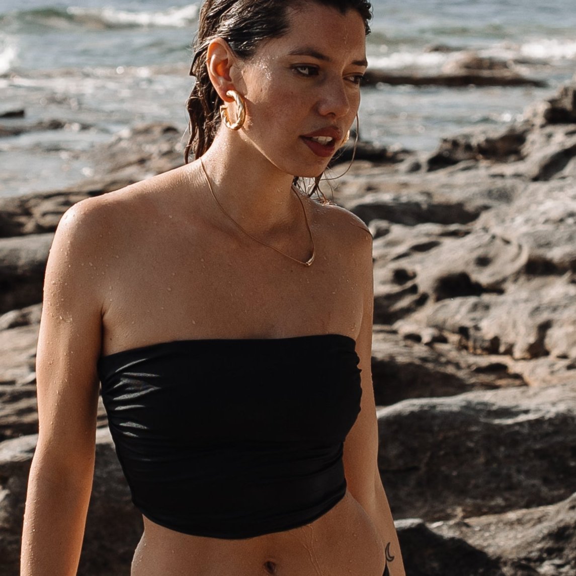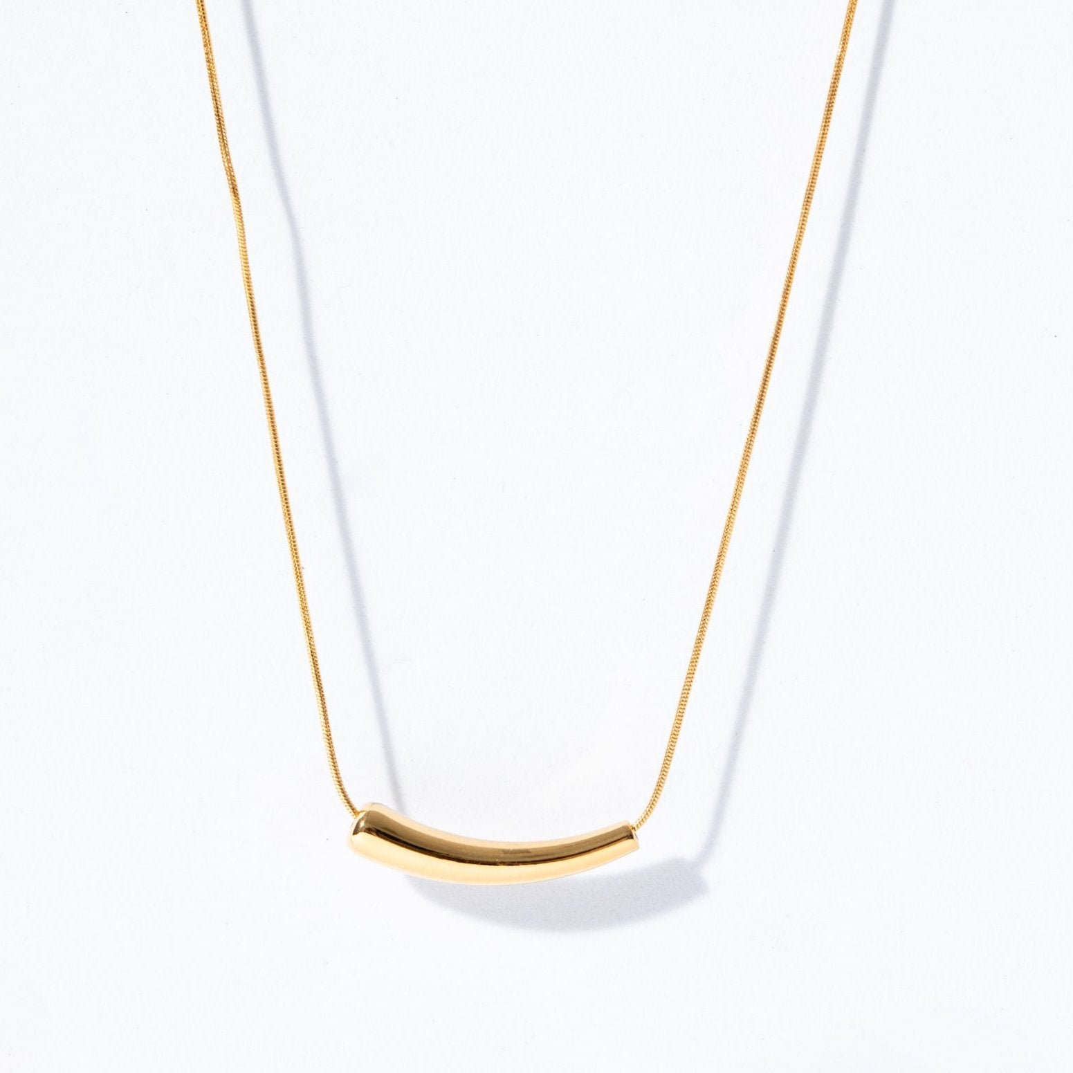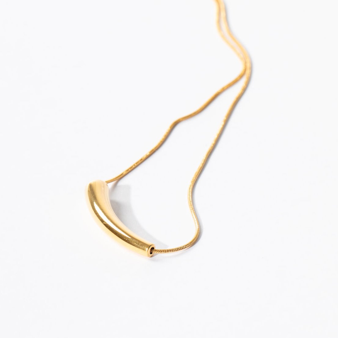 A unique piece that fuses the cylindrical pendant into the chain that is also cylindrical with zero open loops. A closed and durable chain that sits so comfortably you won't even feel wearing it. Made from our waterproof, tarnish proof materials. Wear it all day, all night and anywhere. Including the beach. A forever piece for any outfit.