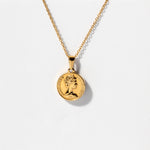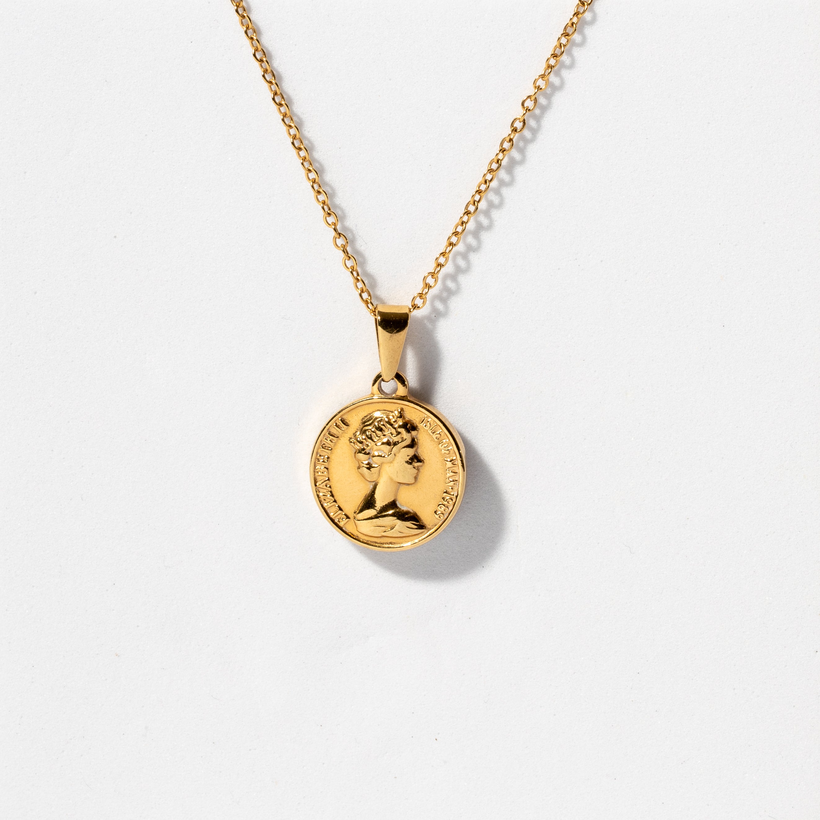 Upgrade your collection with this unique and endearing piece. A British Penny coin  produced in the Mint of Surrey, United Kingdom. A very 'proper' and memorable depiction of the Penny, as it has the image of Queen Elizabeth II embossed on it. The Penny coin measures 20mm in diameter. The flip side is smooth, shiny and gold that will never fade or tarnish. Perfect for stacking with other necklaces too! The Sovereign Pendant comes with it's own chain, a durable link chain that is 2.5mm wide, 45cm's in length - with an additional 5cm extender chain already attached so you can wear it at different lengths according to your mood and attire. A perfect every day classic piece that never goes out of style.