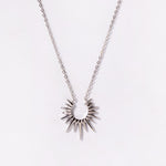 A unique statement necklace highlighting a North Star, beautifully surrounded by eight shining bursts on each side.