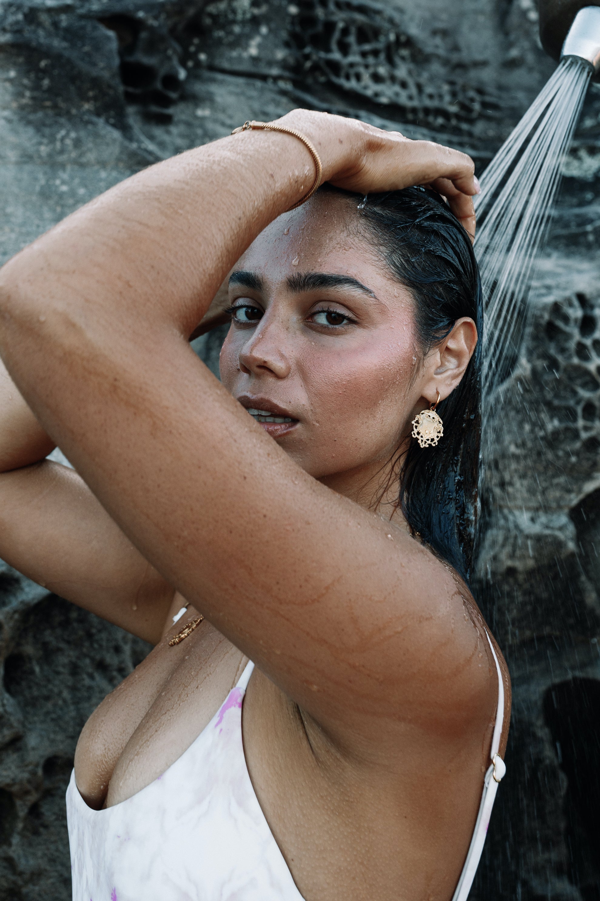 We choose to make all our jewellery with you in mind. So our care advice is, to look after yourself. You go for a swim, you go to the gym, you get sweaty, you go to sleep, you apply cosmetics and creams. You wear any of our pieces whenever you like, for as long as you like to whatever you like.