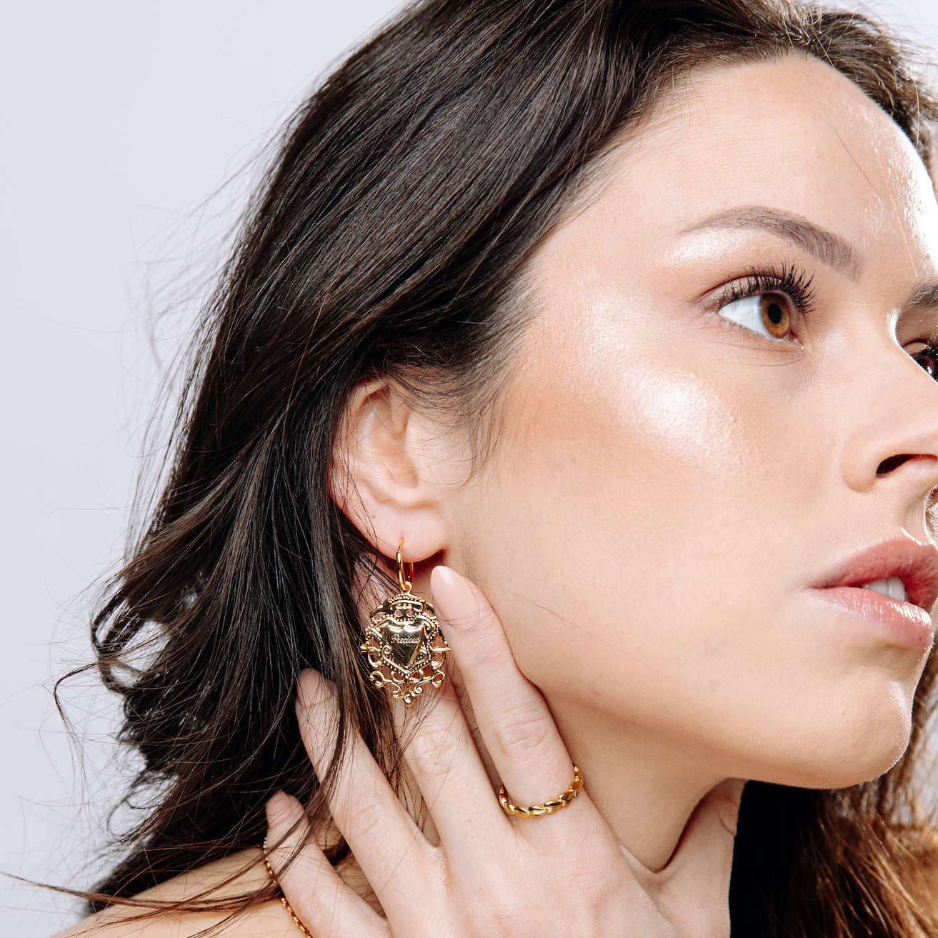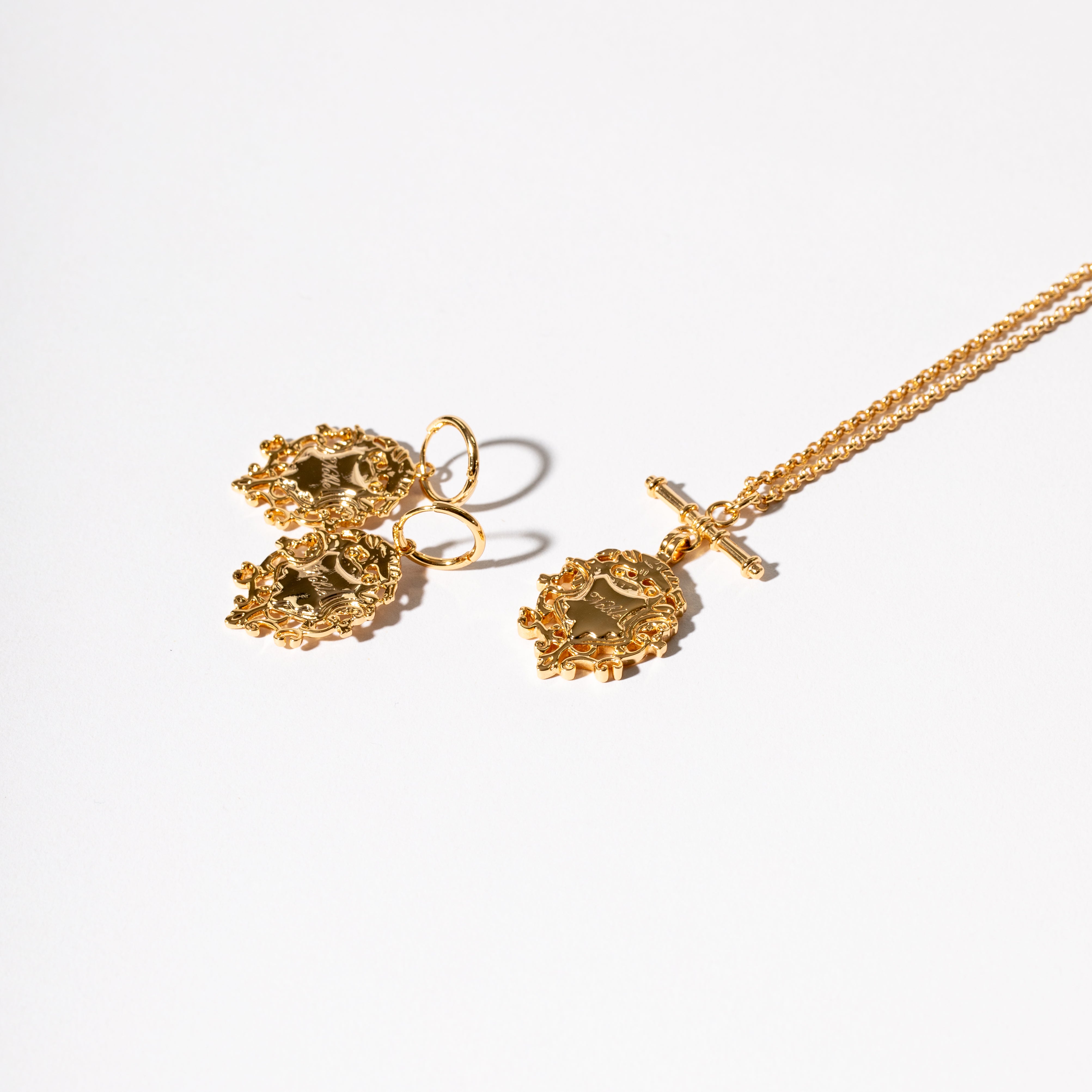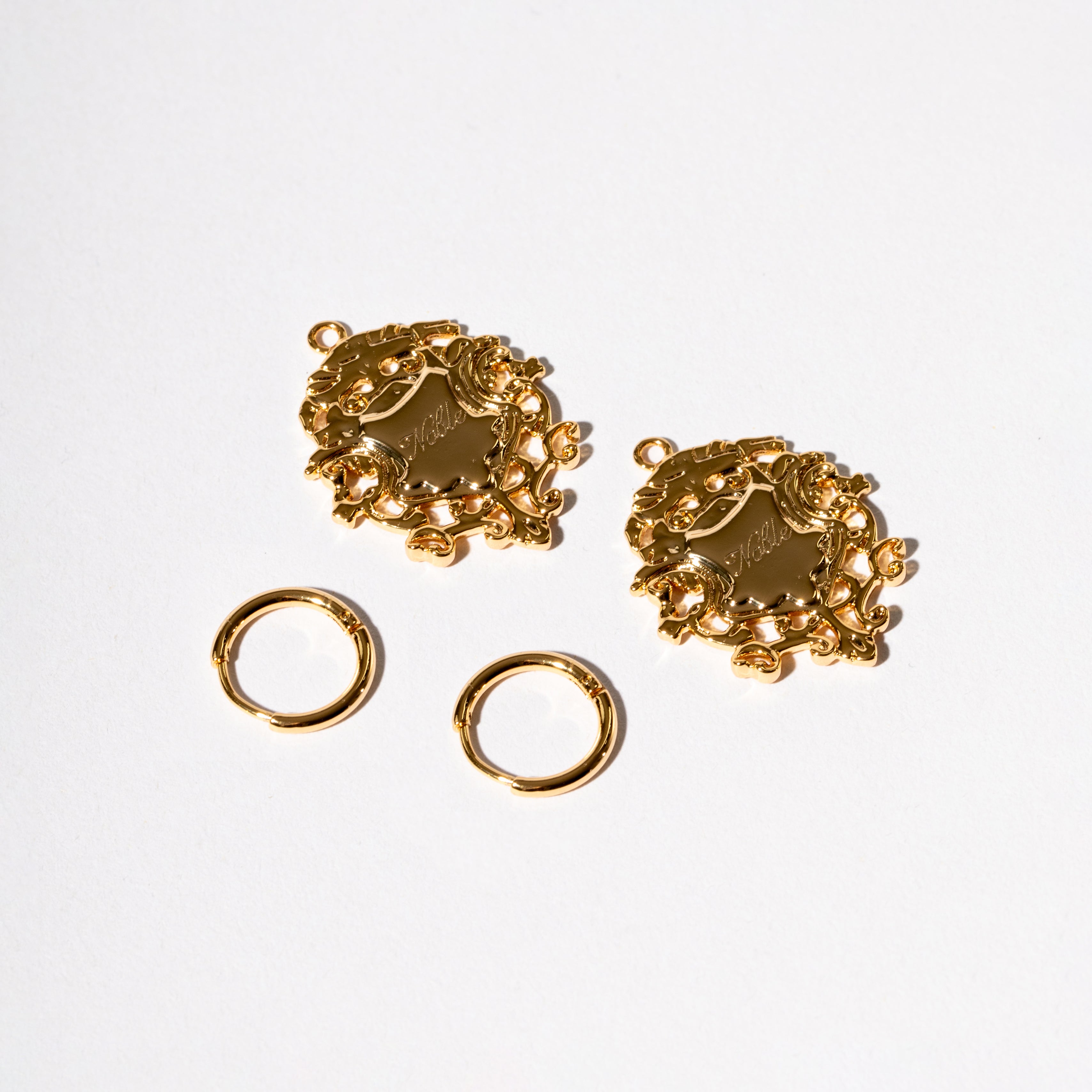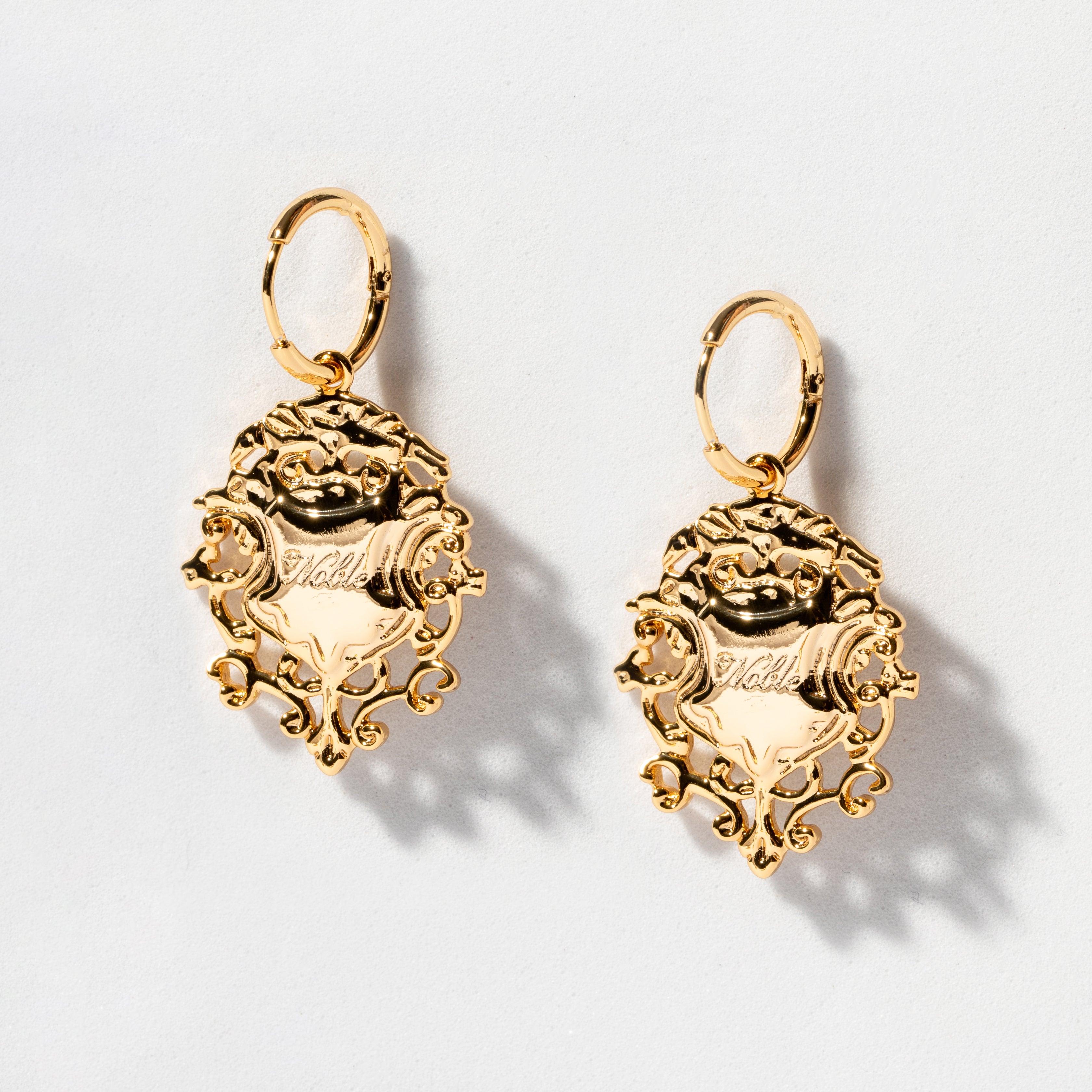 A pair of comfortable sleeper earrings with the truly decadent addition of stunning filigree crests engraved differently on both sides.