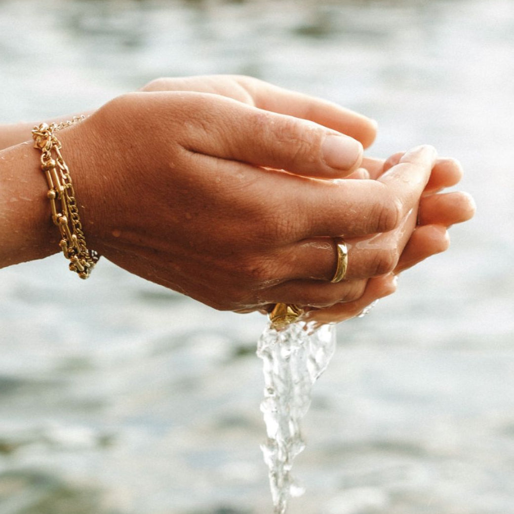 We choose to make all our jewellery with you in mind. So our care advice is, to look after yourself. You go for a swim, you go to the gym, you get sweaty, you go to sleep, you apply cosmetics and creams. You wear any of our pieces whenever you like, for as long as you like to whatever you like.