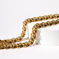 We choose to make all our pieces with marine grade stainless steel as it is non-corrosive, durable yet does not break easily. We then use the latest in vacuum technology to atom by atom apply a permanent layer of real 18k gold.