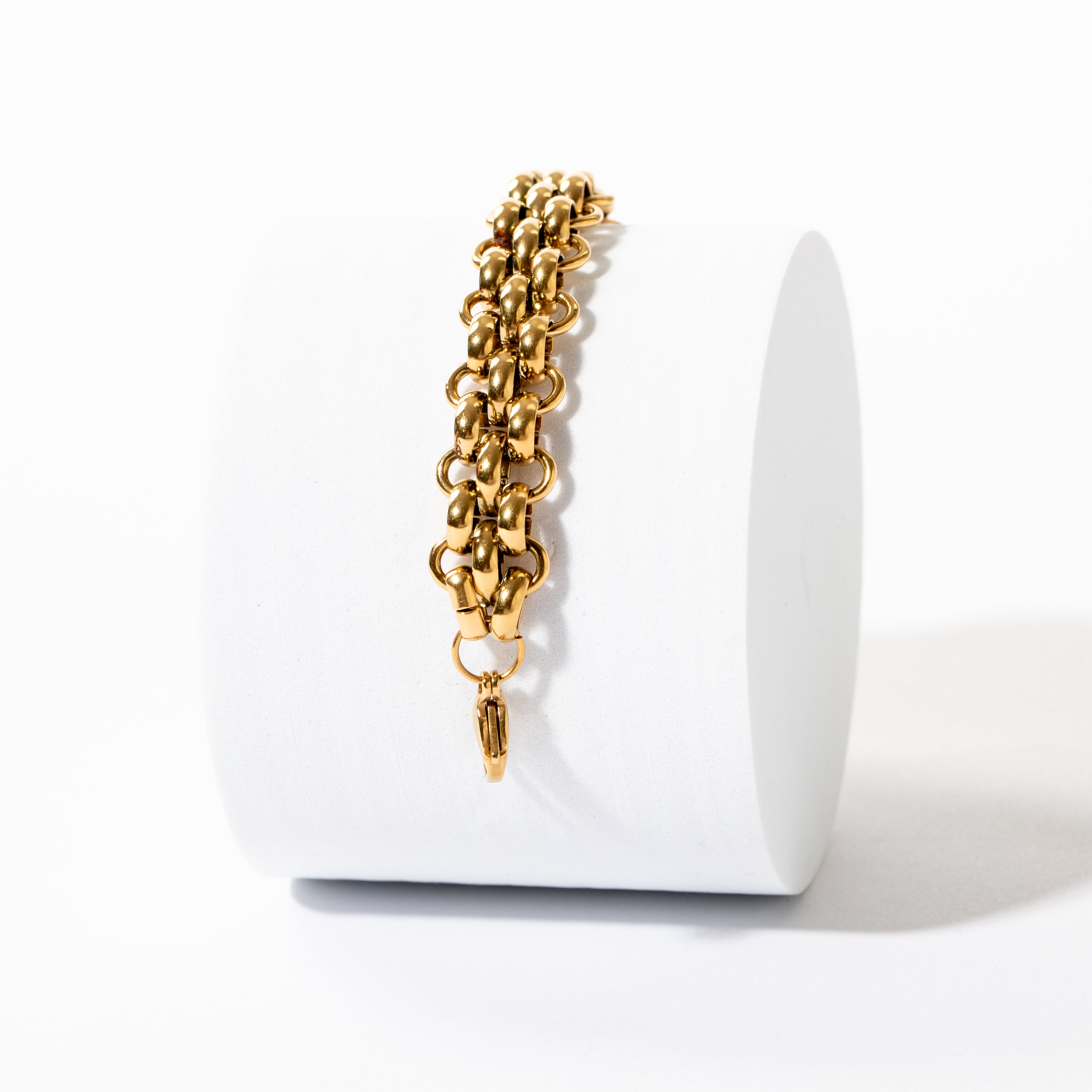 21 cm's in total length including extender already attached. Can be fastened smaller from 15cm onwards. So you can fit to your personal style and body shape. 9mm width gorgeous linked vinatge solid chain.