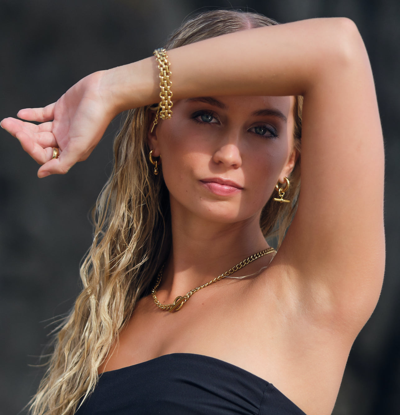 Marine grade stainless steel contains molybdenum to resist the corrosive effects of NaCl or salt in seawater. That means you can be glam at the beach and it won't affect the several layers of 18K genuine gold coating that we apply.