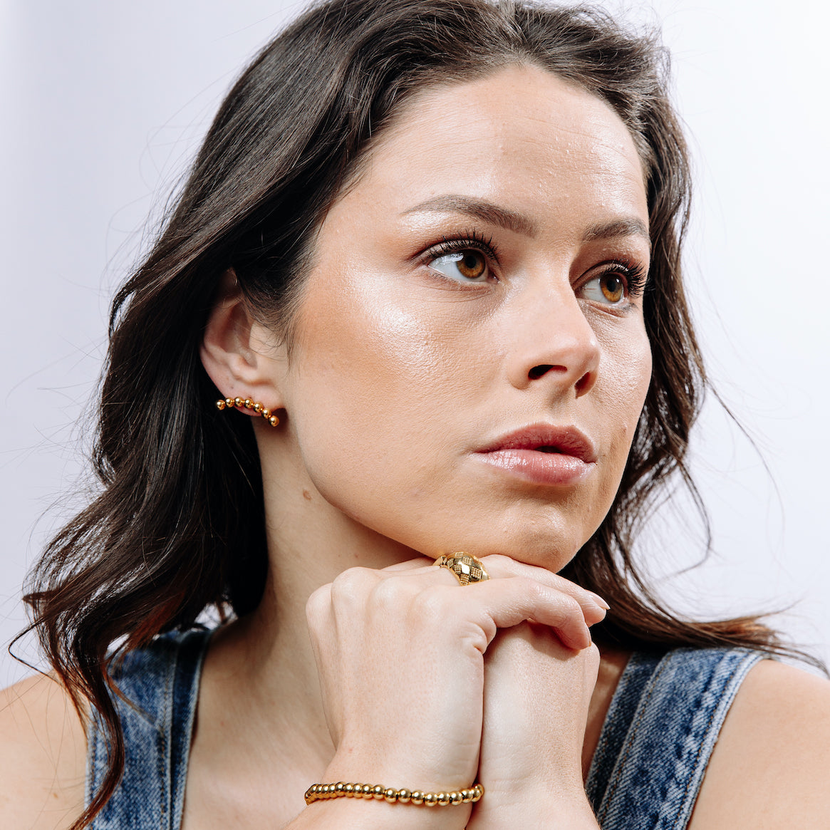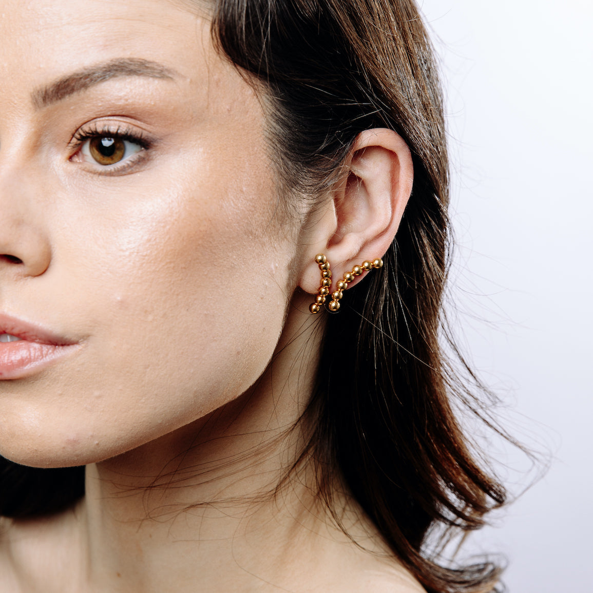 Designed to be worn as ear climbers, the beads delicately climb the ear giving the illusion of multiple piercings, but can also be worn as drop earrings in a more traditional sense. Or wear both on one ear as we have styled in our shoot. Don't forget to check out our matching beaded bracelets and necklaces. Perfect for every day sets. Wear to anything as our 18K gold coated pieces are highly durable, waterproof and allergy safe.